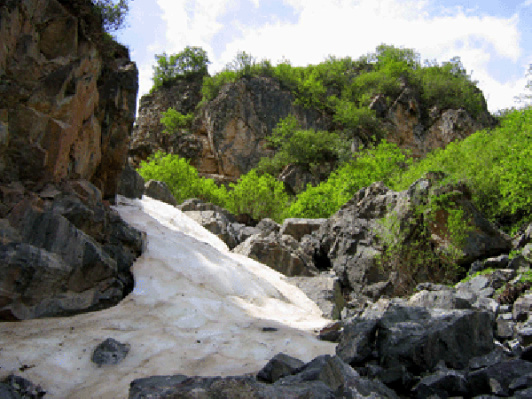 半山腰有一石崖突兀而出,石壁上不知何许人随意书写了“冰峡”两个鲜红的大字,与布满青苔的石壁形成鲜明的对比。炎炎夏日,何来冰峡?正思酌间,忽闻山泉哗哗流淌之声,循声找去,但见山腰石峡深处,冰雪皑皑,凉风习习,有一弘清泉自晶莹的冰雪之间汩汩流出,水清如玉,冰凉透心,爽甜可口,掬之品饮,一缕夏日的清凉顿然传遍你的全身。你仿佛置身于四季不分的迷宫,迷惘中举目四望,山上繁花似锦,彩蝶飞舞,脚下却冰雪封泉,寒气逼人,令你惊诧不已,感叹不已!“冰峡”可谓寺洼山之一大奇观!五月端午,慕名前来寺洼台观看冰峡者络绎不绝。游人经过此处,必要观冰拍照,顺便敲一块冰舒心吮吸一番,凉快凉快,方才罢休。据说此冰吃了之后,肠胃清洁,少生疾病。